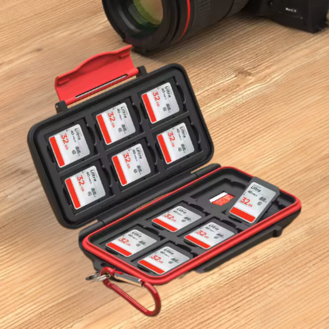 Este organizador es muy útil en campañas fotográficas, monitoreos con cámaras trampa o sesiones prolongadas donde cambiar tarjetas frecuentemente es común. Como resultado, tendrás todas tus memorias protegidas y disponibles al instante, incluso en terreno remoto.