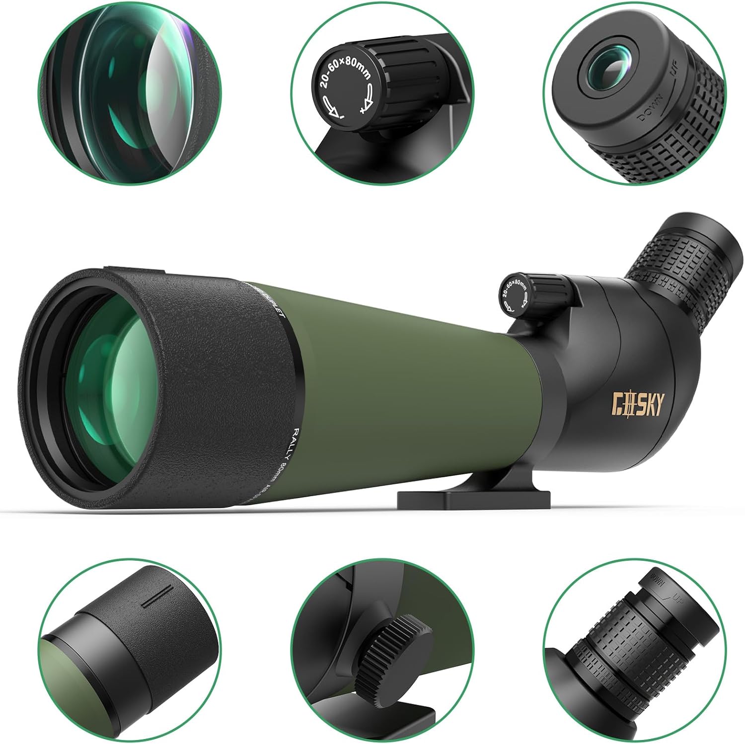 El telescopio terrestre Gosky 20–60×80 cuenta con un ocular en ángulo de 45°, que proporciona una experiencia visual cómoda y ergonómica, especialmente útil durante sesiones de observación prolongadas. Su estructura impermeable, resistente al polvo y a la niebla lo convierte en una opción confiable para utilizar en entornos exteriores como bosques, humedales, playas, cerros o áreas protegidas.